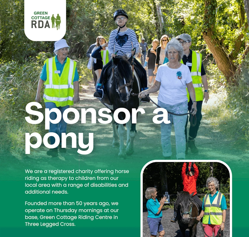 Green Cottage RDA is a local charity that offers Riding for the Disabled.